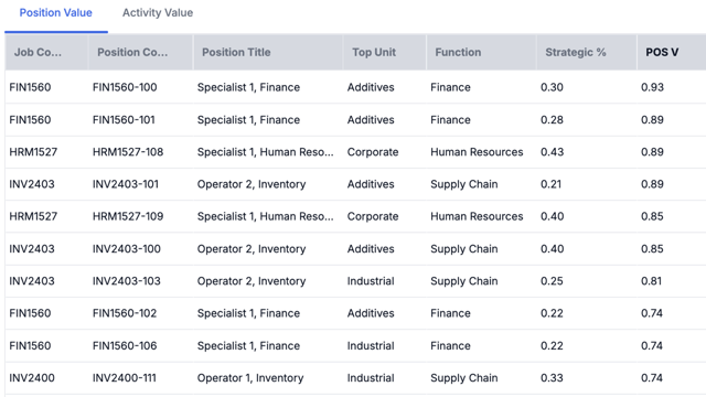 Organizational Effectiveness teams focus on alignment between structure, talent, and strategy. Yet they often rely on static charts and incomplete role data. Orgsure provides the granular activity and job-level insight needed to evaluate efficiency, capability mix, and role clarity, including position-level measures of value and strategic mix. By quantifying workload balance, governance, and redundancy, teams can diagnose organizational friction and design more coherent systems. With Orgsure, organizational effectiveness professionals can move beyond observation to evidence, translating structural analysis into measurable, sustainable improvement.
