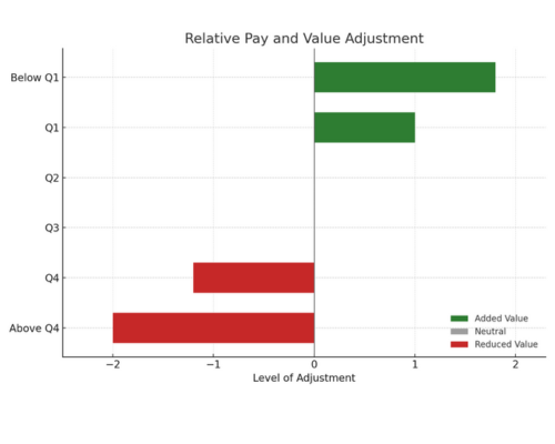 Work Value Analysis measures how effectively time and cost translate into impact. Orgsure quantifies value at the activity, position, and aggregate levels, providing both raw measures of value and adjusted values that factor in relative pay, resource performance, or both. This creates a more complete picture of contribution across roles and structures. High-value work advances strategic goals, while low-value tasks consume resources without impact. By rolling these measures across jobs, functions, capabilities, and value streams, Orgsure reveals where effort delivers the greatest return and where reallocation can improve efficiency and organizational effectiveness.